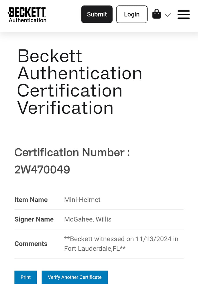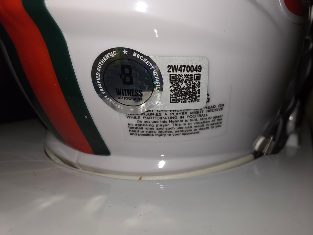 Miami Hurricanes Willis McGahee Autographed Speed Mini Helmet witnessed by Beckett Authentication Services. (BAS)